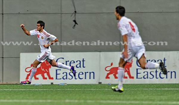 المدينه نيوز - خاص - قطع منتخبنا الوطني نصف الطريق للمونديال وذلك بفوزة على المنتخب السنغافوري بثلاثة أهداف مقابل لاشئ اليوم على ستاد جالان بيسار في سنغافورة في اطار منافسات المجموعة الأولى في الدور الثالث من التصفيات المؤهلة لكأس العالم التي تستضيفها البرازيل عام 2014.