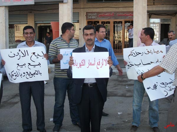 ومن جهة اخرى نفذ العشرات من أهالي مدينة الرمثا إعتصاماً أمام شركة الكهرباء، وذلك إحتجاجاً على إرتفاع أسعار الكهرباء. حمل المعتصمون فوانيس تعمل على الكاز في إشارة لعدم قدرتهم على دفع الفواتير الشهرية للكهرباء، مطالبين بخض أسعار الكهرباء وعدم اللجوء لرفعها.