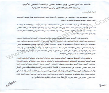 - وصلتنا هذه الرسالة التي بعث بها موظفون من الجامعة الأردنية يقولون إنهم يمثلون المئات لمشاهدة الخبر انقر هنا