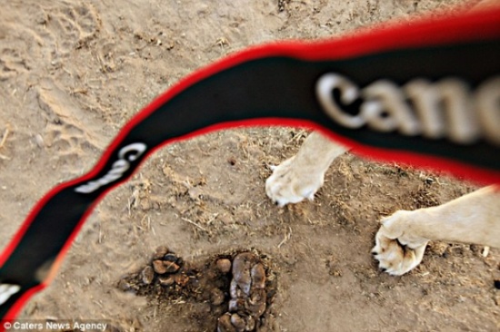 وفي النهاية، أُصيبت اللبؤة بالملل؛ فتركت الكاميرا، فالتقطناها ولم تتضرر من شيء باستثناء آثار الأسنان.