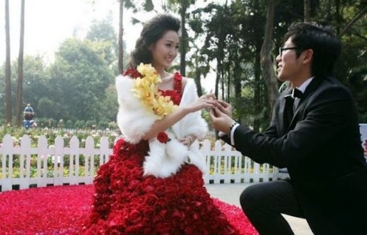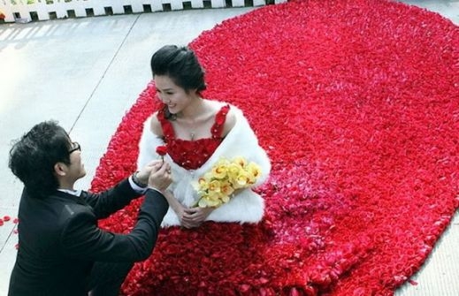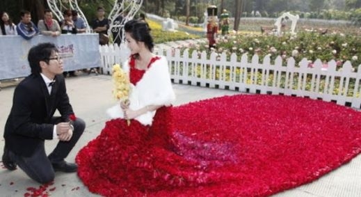 مصمم أزياء يقدم لزوجته فستانا مصنوع من 9999 زهرة في عيد الحب (صور)