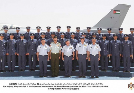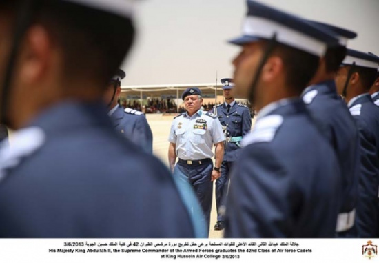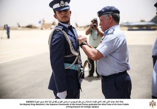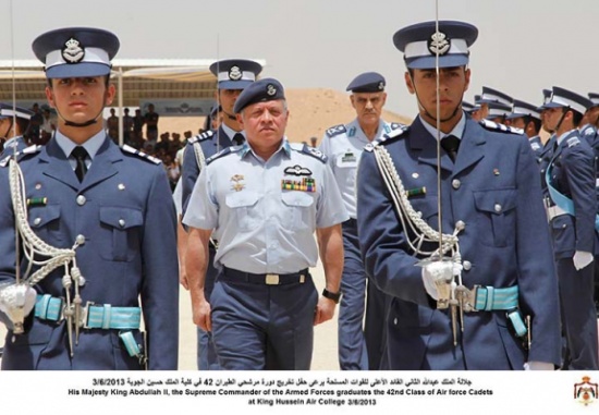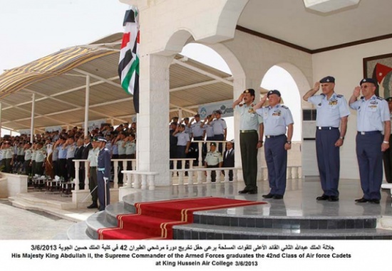 المدينة نيوز -: رعى جلالة الملك عبدالله الثاني القائد الاعلى للقوات المسلحة بحضور رئس هيئة الاركان المشتركة الفريق اول الركن مشعل محمد الزبن صباح الاثنين حفل تخريج دورة مرشحي الطيران الثانية والأربعين في كلية الملك حسين الجوية.