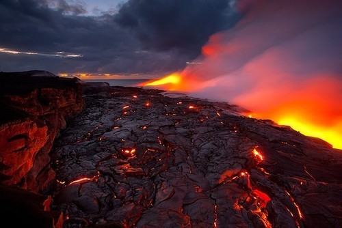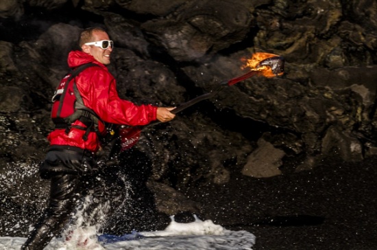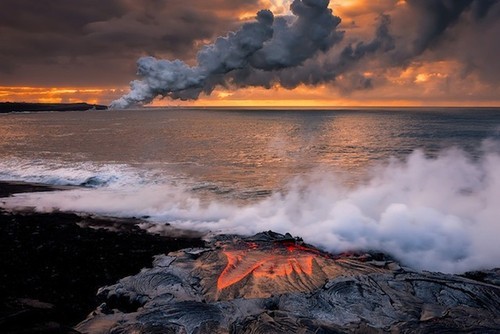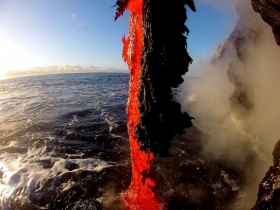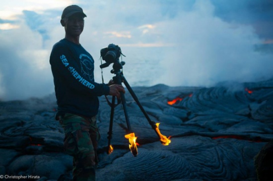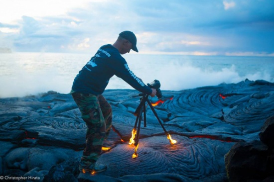 المدينة نيوز -: دفع حب المغامرة المصور العالمي الشهير "Singson" و أحد أصدقائه للمخاطرة بحياتهم بغية إلتقاط مجموعة نادرة من الصور من قلب الحمم البركانية المندفعة من بركان كيلوا بهاواي مطلع الأُسبوع المُنصرم، وتُظهر الصور الملتقطة كيف قام المُصور بالمغامرة بالمشي والوقوف وسط الحمم البركانية شديدة الحرارة لإلتقاط صورة لوضعها على غلاف صفحته على الفيسبوك! وهو الأمر الذي أدى لإشتعال النيران في حذائه وفي القاعدة الثلاثية للكاميرا.