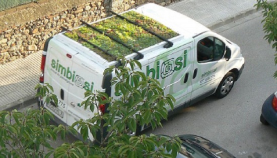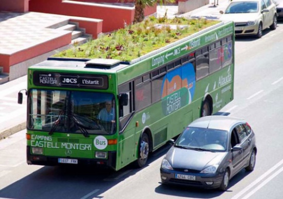 الحافلة تحمل في سطحها مساحة خضراء