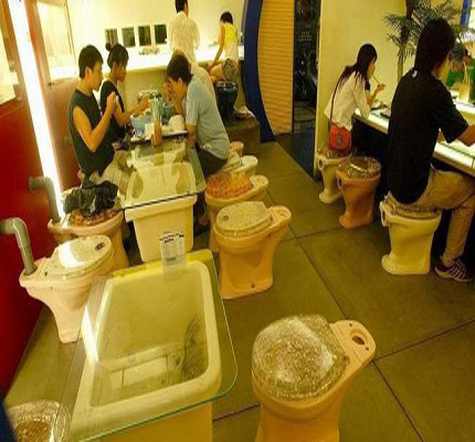 ويقدم المطعم أصناف الطعام المختلفة في أوعية تشبه المراحيض.