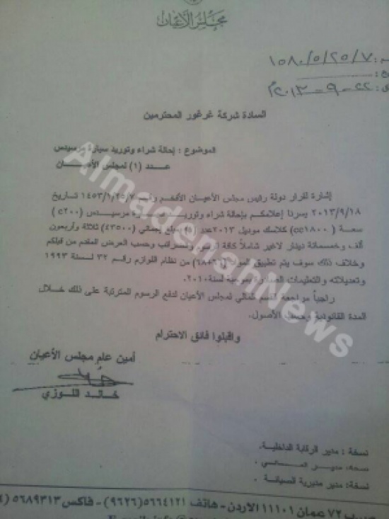 المدينة نيوز - خاص - محمود الفحماوي : بثت مواقع التواصل الاجتماعي هذه الصورة عن كتاب رسمي صادر من مجلس الأعيان بتاريخ 22-9-2013 .