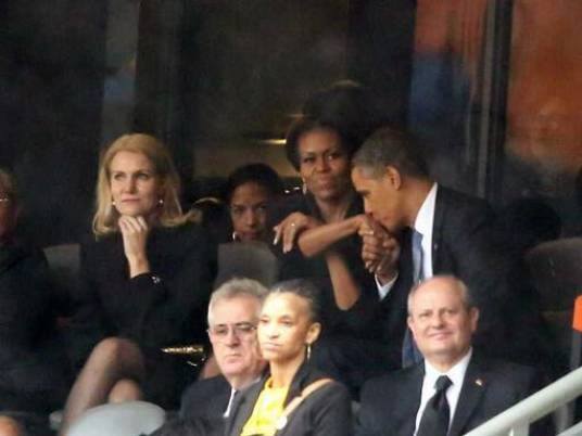 شاهدوا بالصور : غيرة " ميشيل " على اوباما في جنازة مانديلا