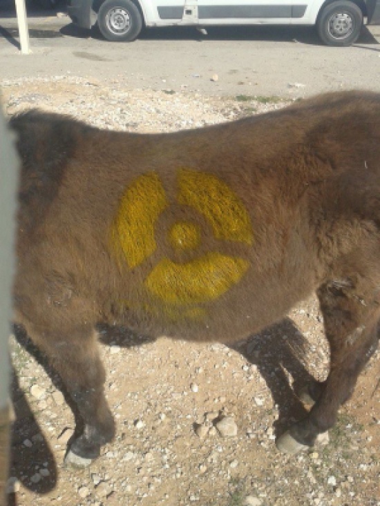 شعار الاشعاع النووي على ظهر الحمار