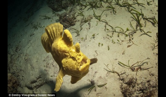 وأشار المصور الروسي إلى أن هذه الأسماك التي تشبه الضفادع هي "مخلوقات غير عادية"، تتحرك وتتصرف بنفس طريقة الضفادع.