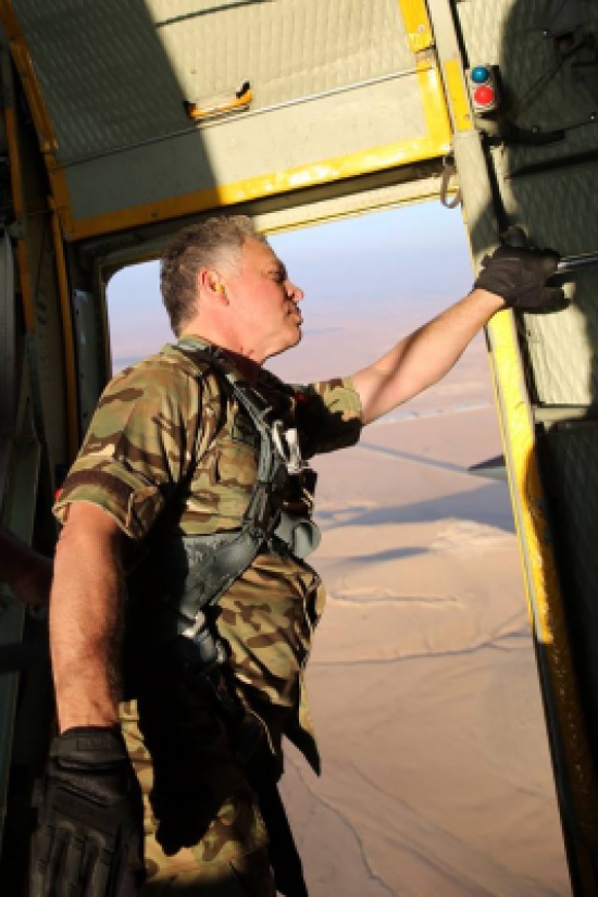 المدينة نيوز - رصد : بدأ جلالة الملك عبدالله الثاني يومه بالمشاركة في تمرين عسكري في العمليات الخاصة كمقفز للمظليين .