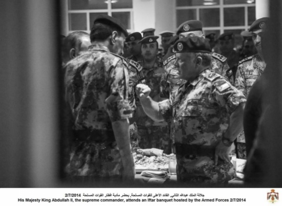 المدينة نيوز :- حضر جلالة الملك عبدالله الثاني القائد الأعلى للقوات المسلحة يرافقه سمو الأمير الحسين بن عبدالله الثاني، ولي العهد، مساء اليوم الأربعاء، مأدبة الإفطار التي أقامتها القيادة العامة للقوات المسلحة، في مركز الملك عبدالله الثاني لتدريب العمليات الخاصة.