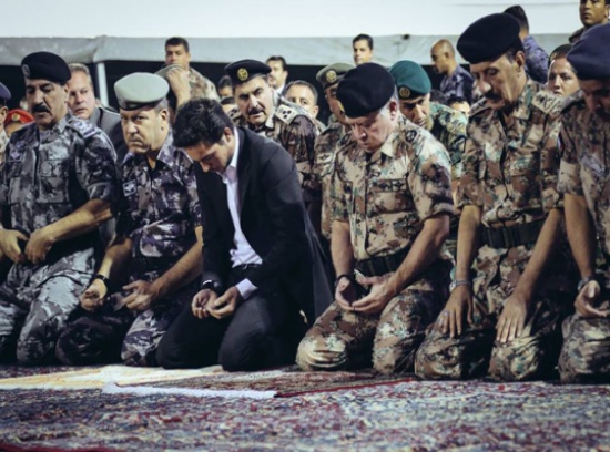 جلالة الملك وولي العهد اثناء اداء صلاة المغرب