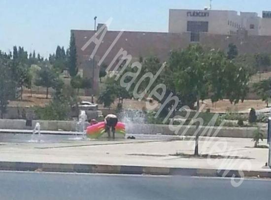 المدينة نيوز - خاص : التقطت الكاميرا مجموعة من الصور لبعض الاشخاص وهم يستجمون على دوار مكة ويلعبون بقارب السباحة عصر السبت .