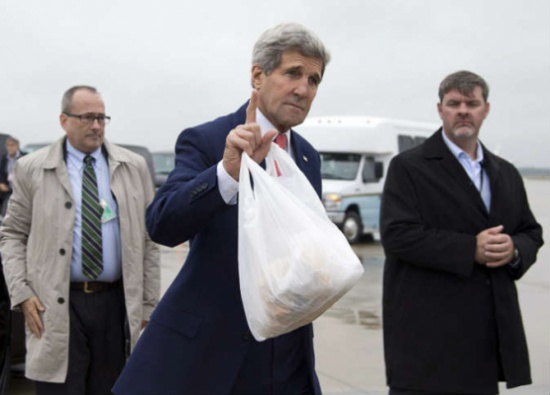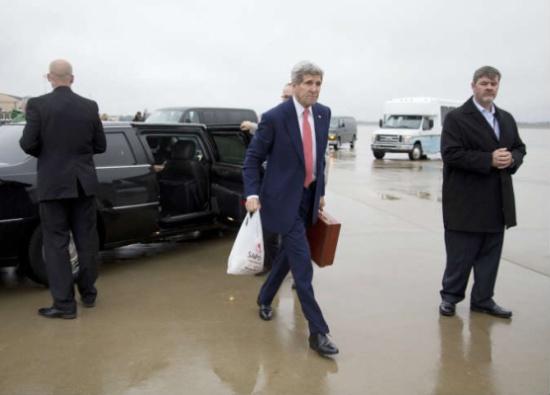 المدينة نيوز :- نشرت وكالة أنباء رويترز 3 صور لوزير الخارجية الأمريكي، جون كيري، وهو يحمل «كيسا بلاستيكيا» أثناء مغادرته قاعدة أندروز الجوية في ولاية ميرلاند الأمريكية، السبت، للمشاركة في المؤتمر الدولي لإعادة إعمار غزة، الذي استضافته مصر، الأحد.