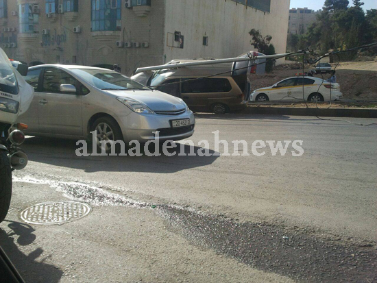 بالصور : مركبة " امريكية " تصطدم بعامود كهرباء بخلدا