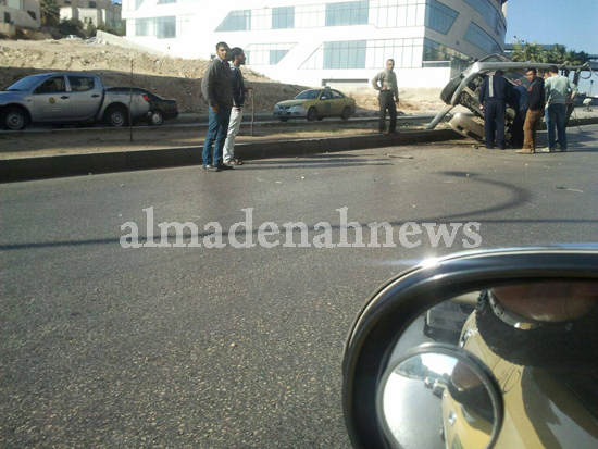 حادث اصطدام سيارة بعامود كهرباء في خلدا - المدينة نيوز