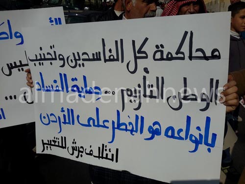 واضافو ان الشعب الاردني واعي ومثقف ولن يسمح بأن يحصل في الاردن كما حصل في دول مجاوره وان الاردن لنا سندافع عنه رغم الضيق بينما الفاسدون لن يدافعوا عنه وسيهربون ويفرطون به لأنه لا يخصهم - وفقا لتعبيرهم - .