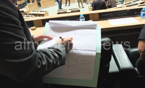 ويقوم القائمون على هذه الوثيقة بجمع تواقيع مختلف الجهات الاهلية والعشائرية وغيرها ، وتنشر المدينة نيوز صورة للوثيقة وصورة خلال جمع تواقيع النواب عليها قبل جلسة المجلس الثلاثاء الذي ناقشت مشروع قانون ضريبة الدخل .