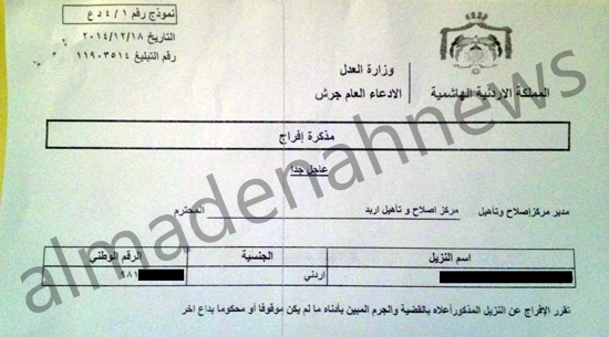 الافراج عن طبيب الأطفال في جرش - وثيقة