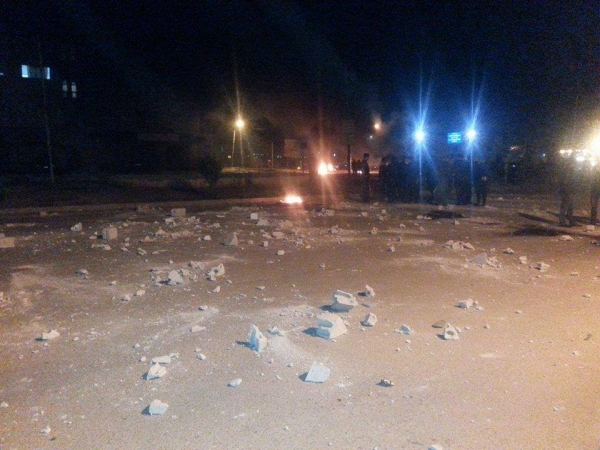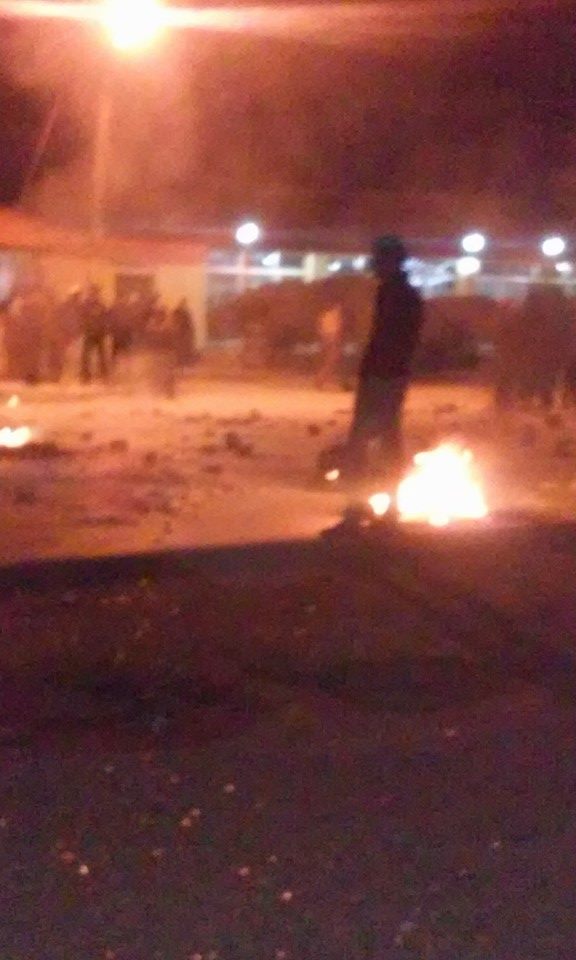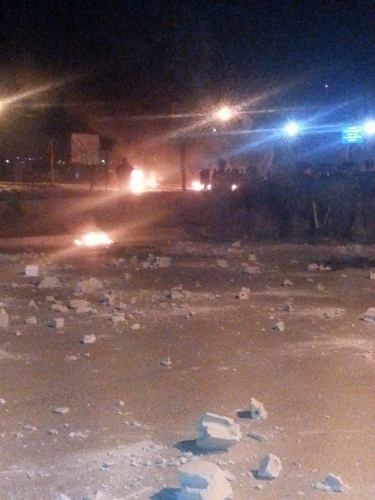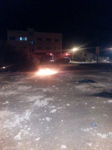 المدينة نيوز - صور :- احرق محتجون الاطارات في وسط الطريق في المفرق كما قاموا باغلاق اشارة ضوئية معروفة باسم " اشارة الردايدة " ، مساء الخميس .