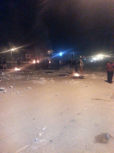 وبينوا ان الاجهزة الامنية تدخلت لفتح الطريق وابعاد المحتجين واطفاء الاطارات المشتعلة .