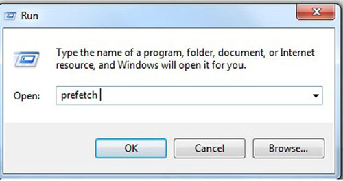 - قم بعد ذلك بالعودة وفتح run من جديد وبداخلها اكتب prefetch وبعد ذلك Ok سيتم فتح ملف جديد، حدد أيضا كل ما فيه وقم بمسحه .