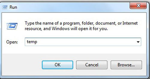 - قم بفتح run من قائمة start واكتب بداخلها temp واضغط على ok
