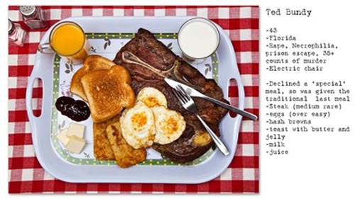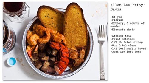 وطلب جمبري مقليا، وجبة كنتاكى، بطاطس فرنسية، فراولة كوجبة أخيرة له داخل السجن.