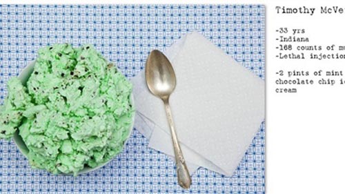 أم تيموثى مل فاى، قام بعملية تفجير بمدينة أوكلاهوما وتسبب في مقتل 186 شخصا، حكم عليه بالإعدام بالحقن المميت وهو يبلغ من العمر 33 عاما، وتناول آيس كريم بالشيكولاتة والنعناع في آخر وجباته.