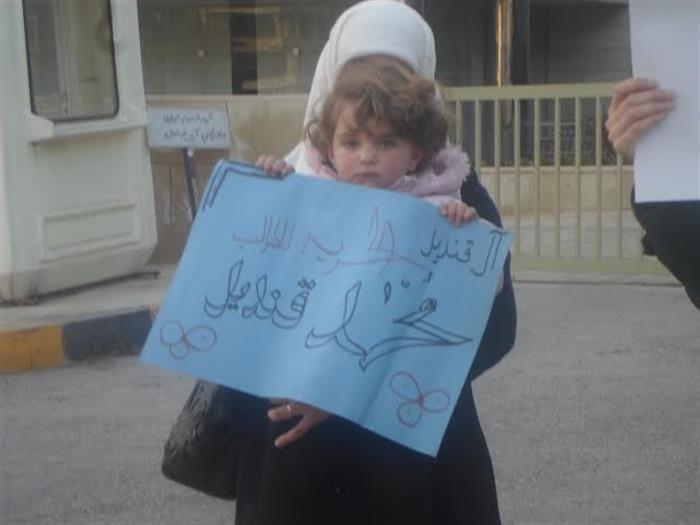 وجدد المحتجون مطالبتهم بالإفراج عن أبناءهم الموقوفين من قبل محكمة أمن الدولة بتهمة " دعم المقاومة " .