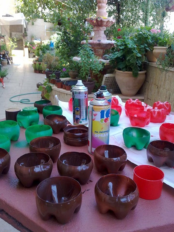 تحوّل الفنانة الفلسطينية إيمان عميرة المخلفات البيئية إلى أشكال ومجسمات فنية متميزة، وتنسقها بالأزهار ونباتات الزينة لتبتدع فناً مغايراً لاقى إعجاب الكثيرين ممن أقبلوا على فنها واقتنوا مخرجاته.