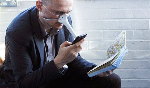 12) اصبع صناعي يوضع على الأنف : يستخدم هذا الشيء من أجل استعمال الهواتف التي تعمل على اللمس والطريف في الأمر أن وجود شيء بهذا الطول على الأنف كما في الصورة سيؤدي الى الحول والضرر بالعيون بالمقابل لا وجود لفائدة تذكر .