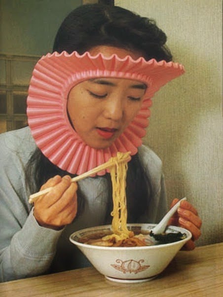 14) أخيرا هذا الابتكار لمنع تلامس الشعر الطويل مع الطعام مع العلم أنه يمكن ربط الشعر أثناء الطعام أو وضعه خلف الأذن .