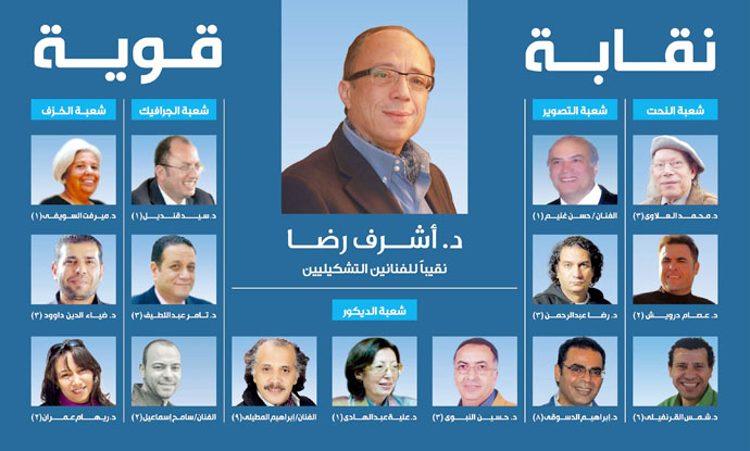 كما يتنافس على مقاعد مجلس الإدارة تحت شعار " نقابة قوية " من كل شعب النقابة الفنانون : السيد قنديل وتامر عبد اللطيف وسامح إسماعيل ( جرافيك ) وعلية عبد الهادى وحسين النبوى وإبراهيم المطيلى ( ديكور ) و رضا عبد الرحمن وحسن غنيم وإبراهيم الدسوقى (تصوير) ومحمد العلاوى وعصام درويش وشمس القرنفلى ( نحت ) وميرفت السويفى وضياء داوود وريهام عمران ( خزف )