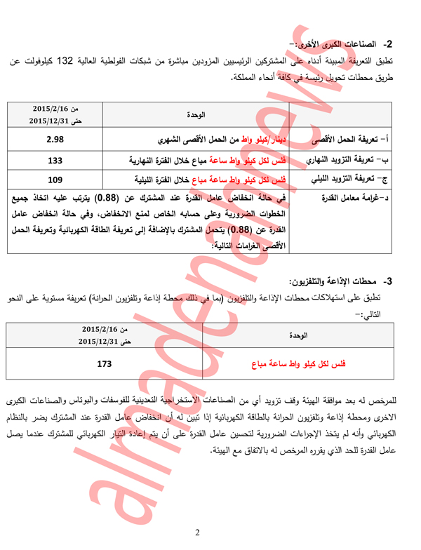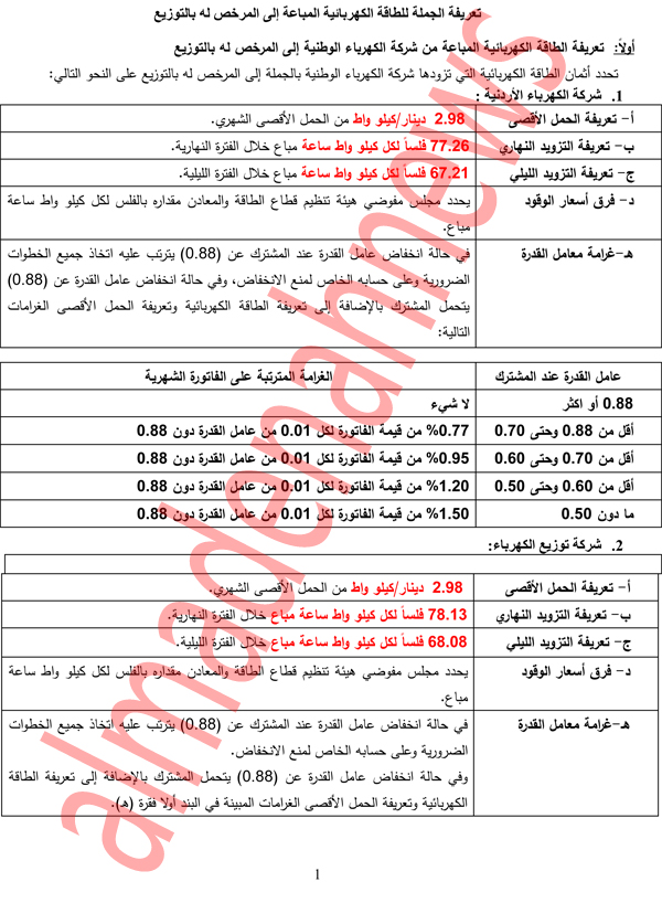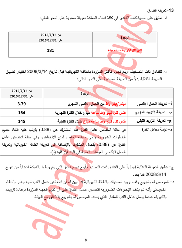 وقال ان الهيئة اعلمت شركات الكهرباء بالتعرفة الجديدة، وباشرت العمل بها إعتباراً من السادس عشر من الشهر الماضي، مؤكدا انه سيتم اجراء تسويات مالية وارجاع الفروقات ان وجدت لجميع المشتركين.
