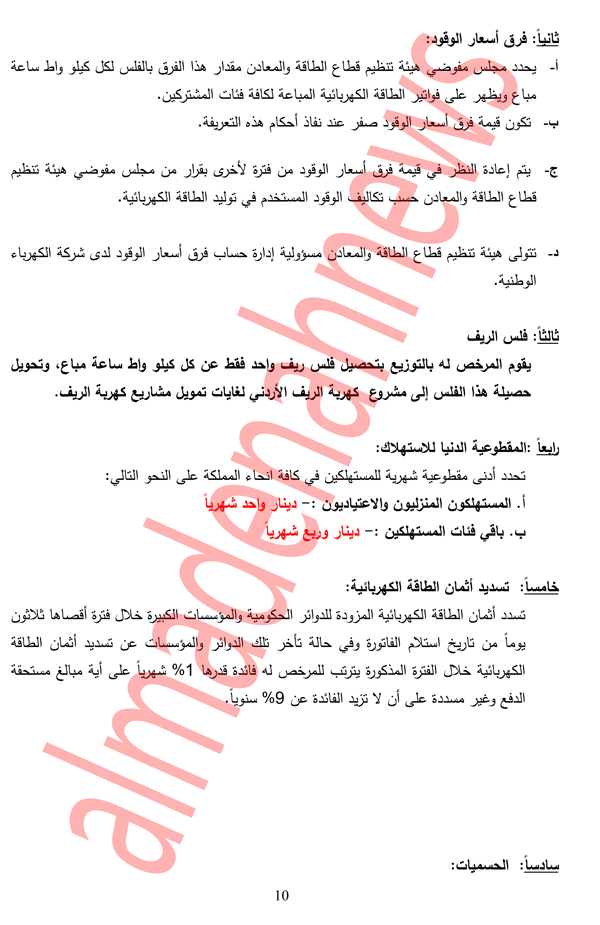 كما اكد ان الهيئة ستواصل دورها في الحفاظ على حقوق طرفي المعادلة الكهربائية (المستهلك والمستثمر) انطلاقا من قانون الكهرباء العام والمهام المناطة بها كجهة تنظيم ورقابة على قطاع الكهرباء في المملكة.