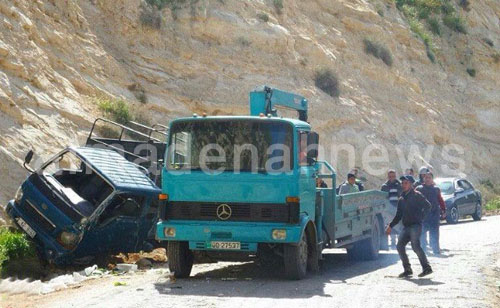 بالصور ... اصابتان في تدهور بك اب بالرمثا