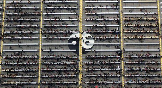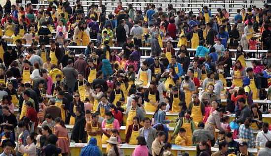 صورة من أعلى للمشاركين فى الفعالية وحسب موقع "shanghaiist" الصينى، تواجد المشاركون فى 18 مكانًا بمقاطعة خبى، فى وقتٍ واحد، حيث أعدوا الفطائر للخبز متبعين توجيهات فيديو طويل للطبخ مدته 50 دقيقة، وبذلك حطمت مقاطعة "خبى" بشكل رسمى الرقم القياسى السابق الذى حققته مدينة "تشينغداو" فى مقاطعة "شاندونغ" الصينية، حيث اجتمع 3 آلاف و687 شخصًا من أجل خبز الفطائر معًا فى فبراير الماضى.