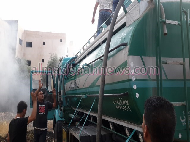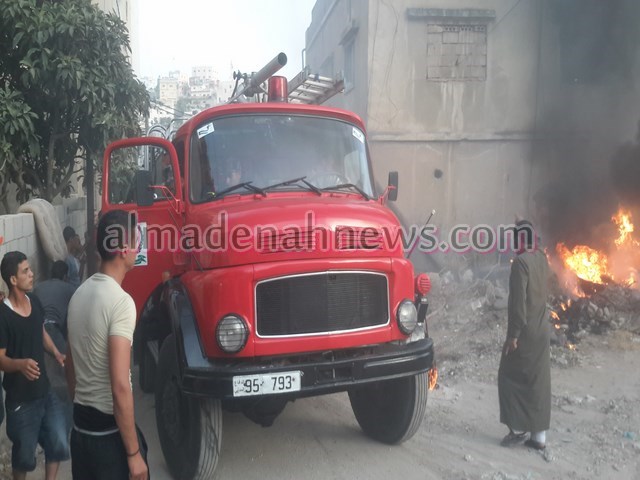 واستمرت عملية تصاعد الدخان الأسود الكثيف قبل أن يقوم احد سواقين تنكات المياه بالتبرع لأطفاء الحريق لحين قدوم فرق وكوادر الدفاع المدني في محافظة جرش والقيام بعمليات الإطفاء للحريق الواقع مقابل قاعة بلدية جرش الكبرى .