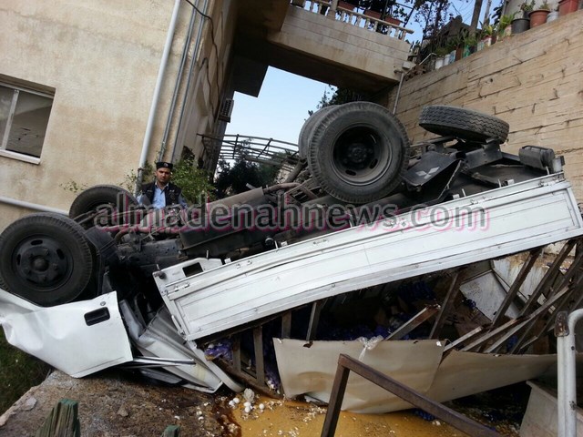 وفي التفاصيل كما رواها مصدر امني للمدينة نيوز : انه ونتيجة عدم اخذ الحيطه والحذر اثنا الرجوع للخلف وفي منطقة صافوط سقط البكب عن مرتفع حولي 35 متر واستقر في ساحة احد المنازل.