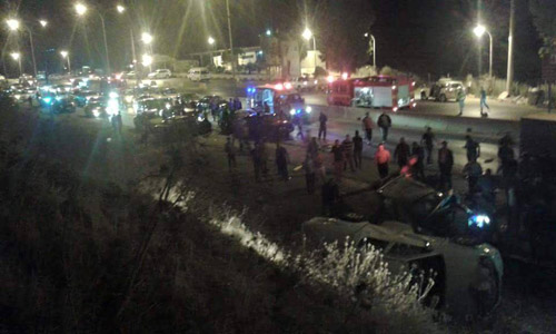 المدينة نيوز :- صرحت مصادر إدارة الإعلام والتثقيف الوقائي في المديرية العامة للدفاع المدني بان كوادر الإنقاذ والإسعاف في مديرية دفاع مدني جرش تعاملت فجر الثلاثاء مع حادث تدهور تريلا واصطدامها بـ (10) مركبات بمنطقة سيل جرش / مقابل المحطة الأمنية ، نتج عن الحادث إصابة (24) شخص بجروح ورضوض في مختلف أنحاء الجسم.