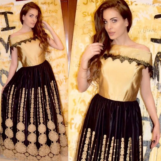 كما وتألقت في اطلالة رمضانية مميزة بالأصفر والاسود وتسريحة شعر مثالية ومكياج ناعم. وقدمت التهاني للجميع بمناسبة شهر رمضان الفضيل.
