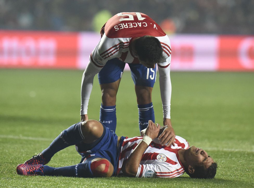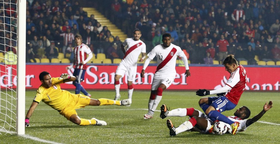 بادر منتخب بيرو بالتهديد عن طريق رينا في الدقيقة السابعة من عمر الشوط الأول ولكن تسديدته مرت بجانب القائم ، رد عليها باريوس بتسديدة علت العارضة بقليل ، لينحصر اللعب بعدها في وسط الملعب مع سيطرة متكافئة ، نجح بعدها لاعب منتخب بيرو كوريرو من فك حالة الملل الموجودة عندما تلقى الكرة من ركنية إستلمها على حافة منطقة الجزاء وأطلقها قوية فشل حارس منتخب باراغواي في صدها .