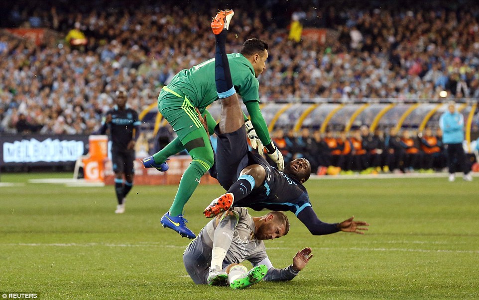 وقبل لحظات من إطلاق الحكم صافرة نهاية الشوط الأول، احتسب ضربة جزاء لمانشستر سيتي بدعوى تصدي سيرخيو راموس للكرة بيده داخل منطقة الجزاء، وتقدم يايا توريه لتنفيذها مسجلا الهدف الوحيد لمانشستر.