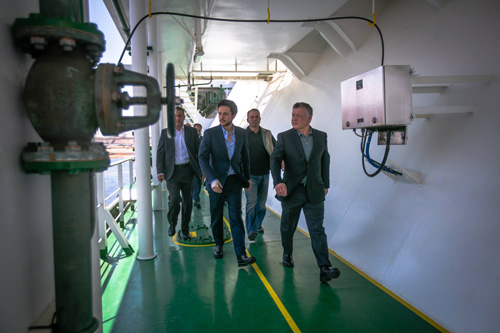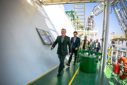 وأطلق جلالته الغاز الطبيعي، من غرفة السيطرة في سفينة تخزين الغاز العائمة (جولار ايسكيمو) إلى خط الغاز العربي، ليصل منه إلى محطات توليد الطاقة الكهربائية في المملكة.