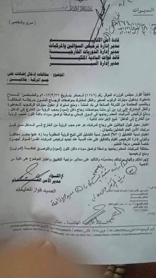 وثيقة : بعد المنع التام .... السماح بتظليل السيارات 30%