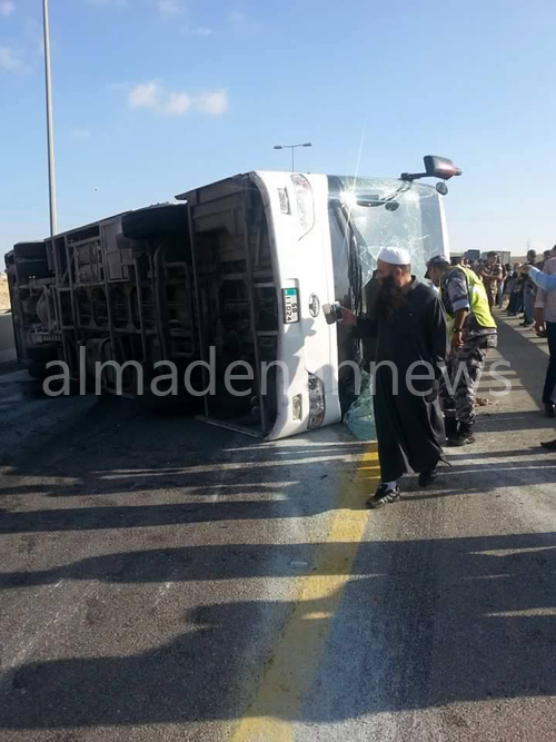 بالصور : 33 اصابة بحادث تدهور حافلة على خط الجامعة الهاشمية