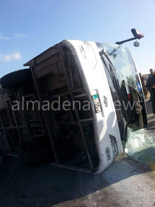 المدينة نيوز - خاص - : اصيب 33 شخصا ( كحصيلة اولية ) بجروح ورضوض متفاوتة جراء حادث تدهور حافلة عاملة على خط الجامعة الهاشمية في منطقة شارع المية من جهة جسر الكلية .