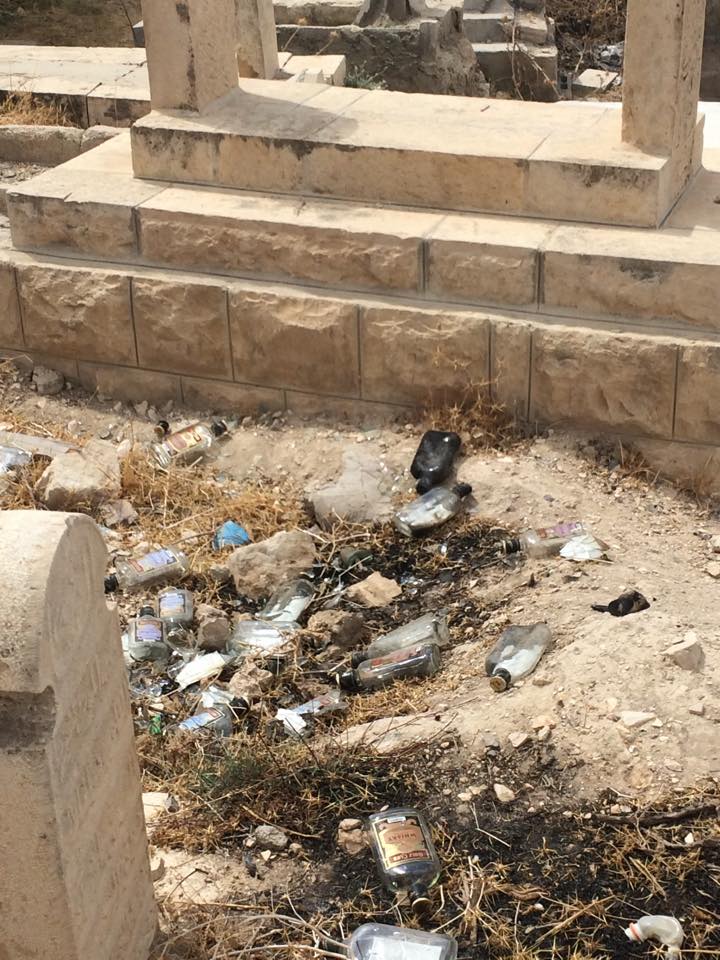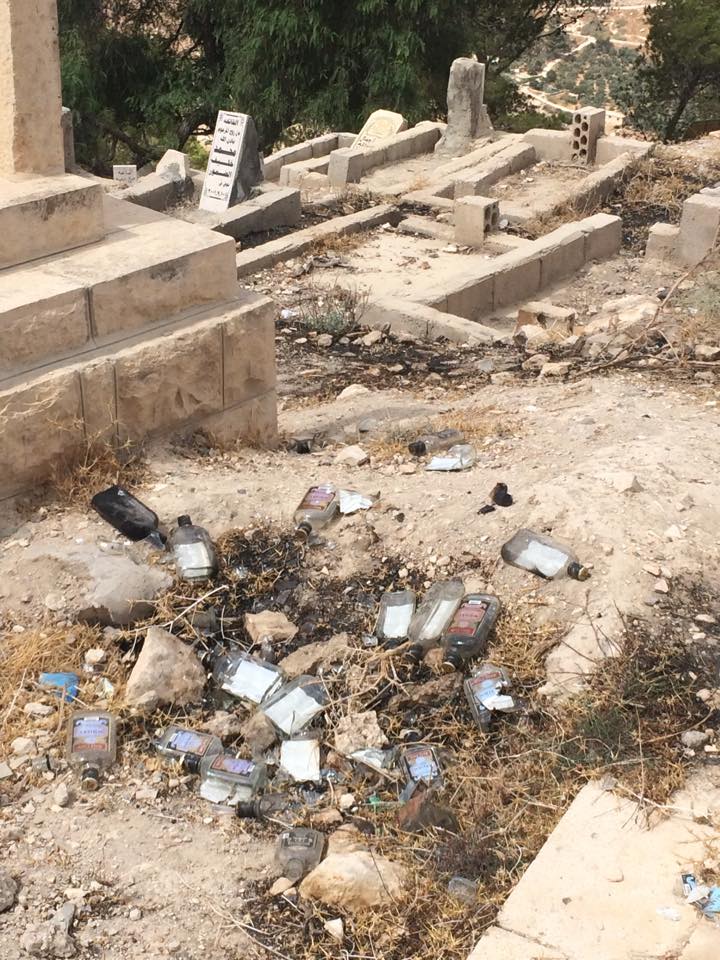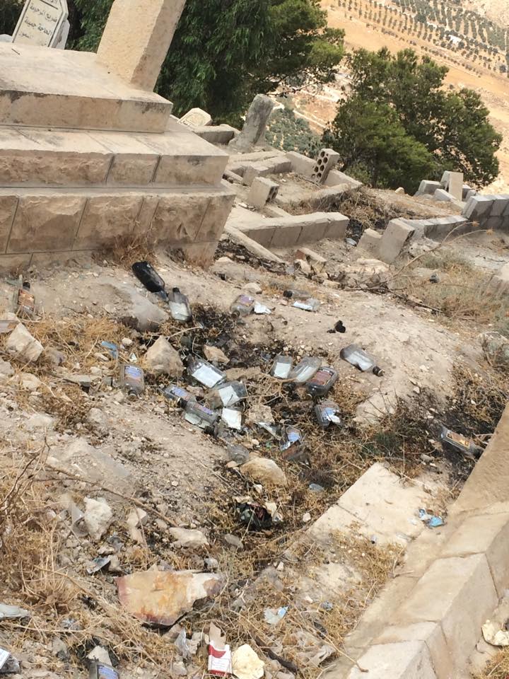 بالصور : " سكارى " يجدون مكان لهم في مقبرة الكرك .. والأهالي يشتكون