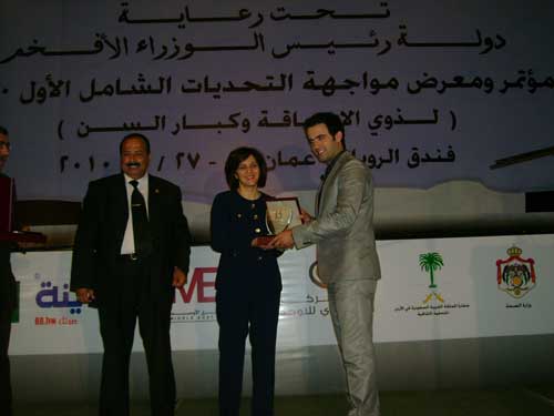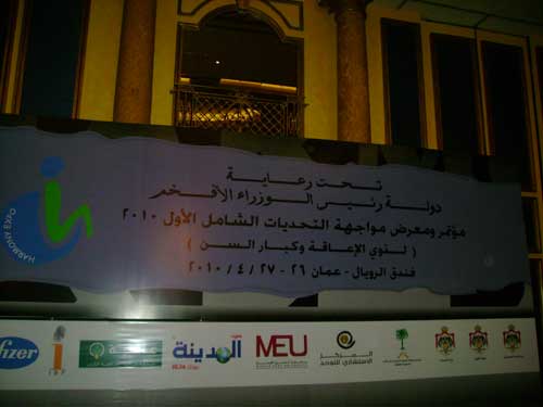 اما المعرض الذي اقيم على هامش المؤتمر الذي نظمته مجموعة الرمز الاردن في فندق الرويال، بحضور السفير السعودي ورؤساء جامعات. وبرعاية اعلامية من راديو صوت المدينة فقد احتوى على عدة اعمال تضمنت مشغولات ومطرزات من اعمال طلاب مراكز المعاقين وعرض لاجهزة طبية خاصة بذوي الاعاقات ومستلزمات اخرى.